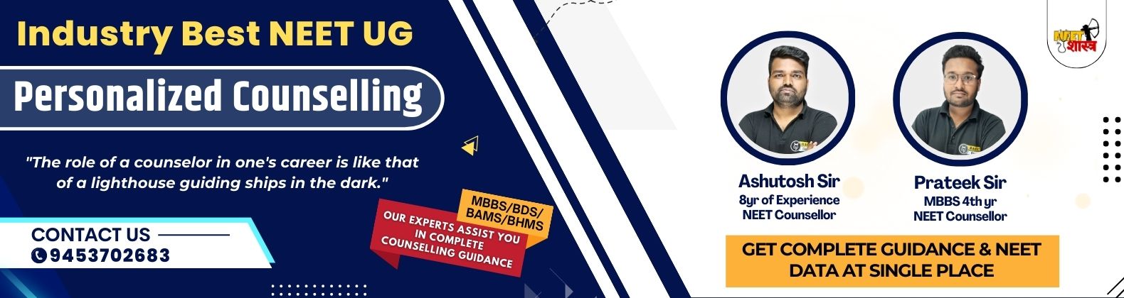 NEET personalized Counselling Service is dedicated to providing personalised & Expert Guidance to NEET qualified students seeking admission in MBBS, BDS or AYUSH Courses.